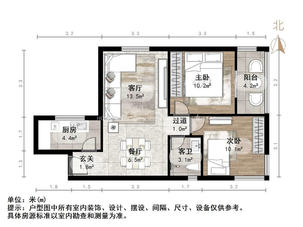 朝向南北 建筑面积78㎡