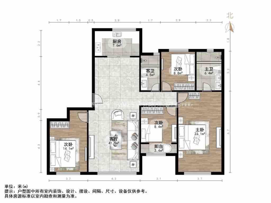 厅室4室2厅2卫1阳台