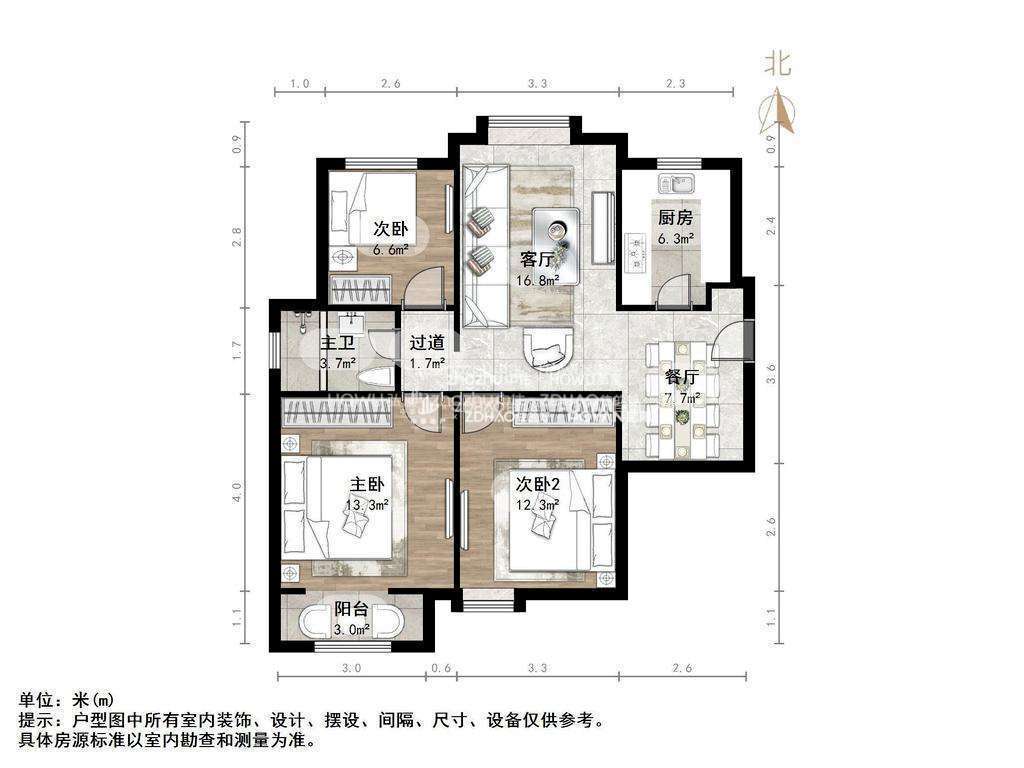 厅室3室2厅1卫1阳台