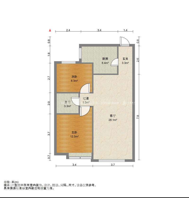 朝向南北 建筑面积92㎡