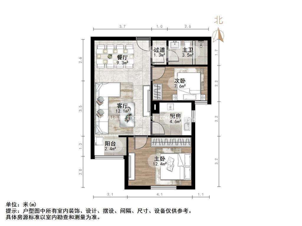 厅室2室2厅1卫1阳台