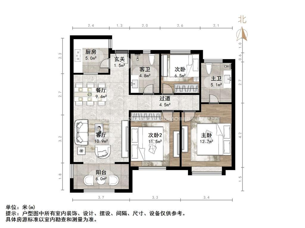 朝向南北 建筑面积119㎡