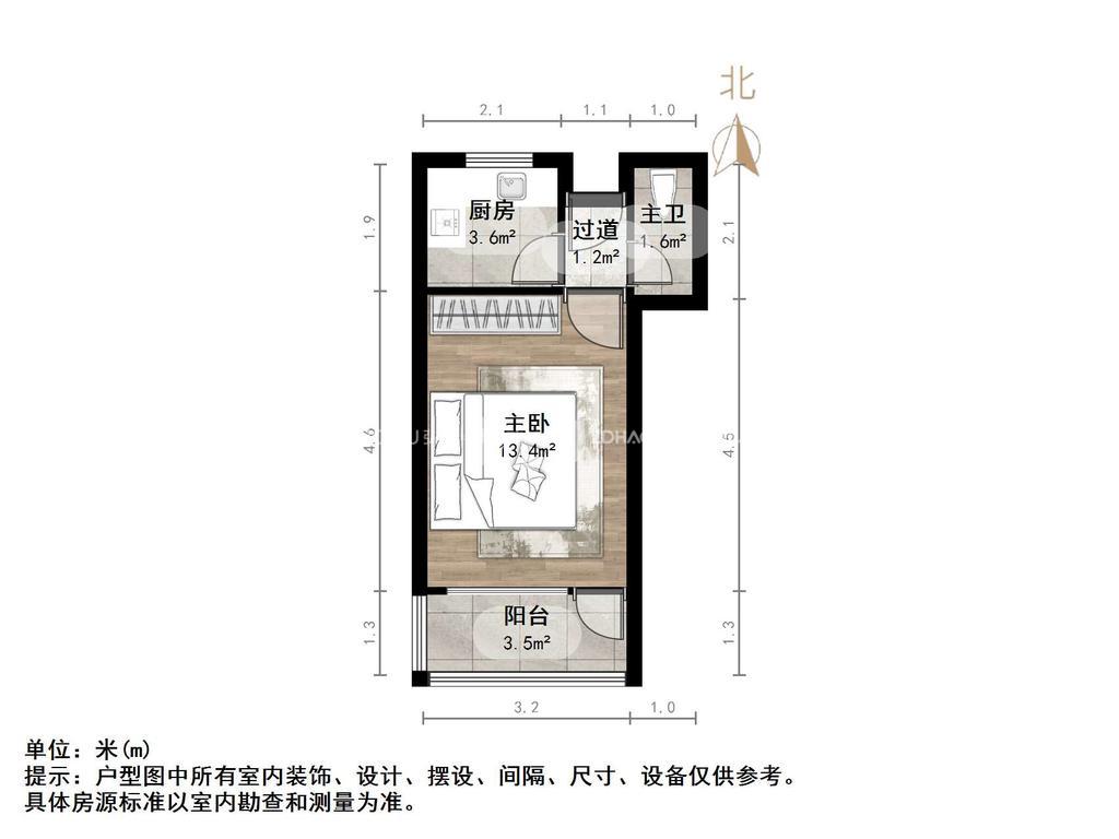 厅室1室1厅1卫1阳台