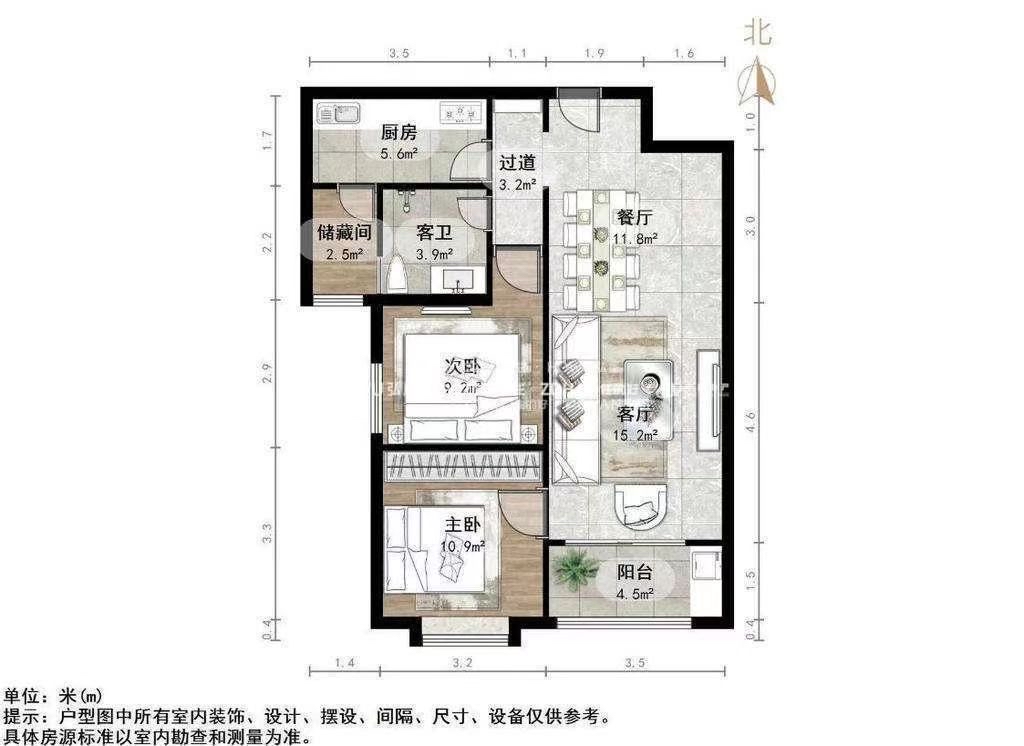 朝向南北 建筑面积98.36㎡