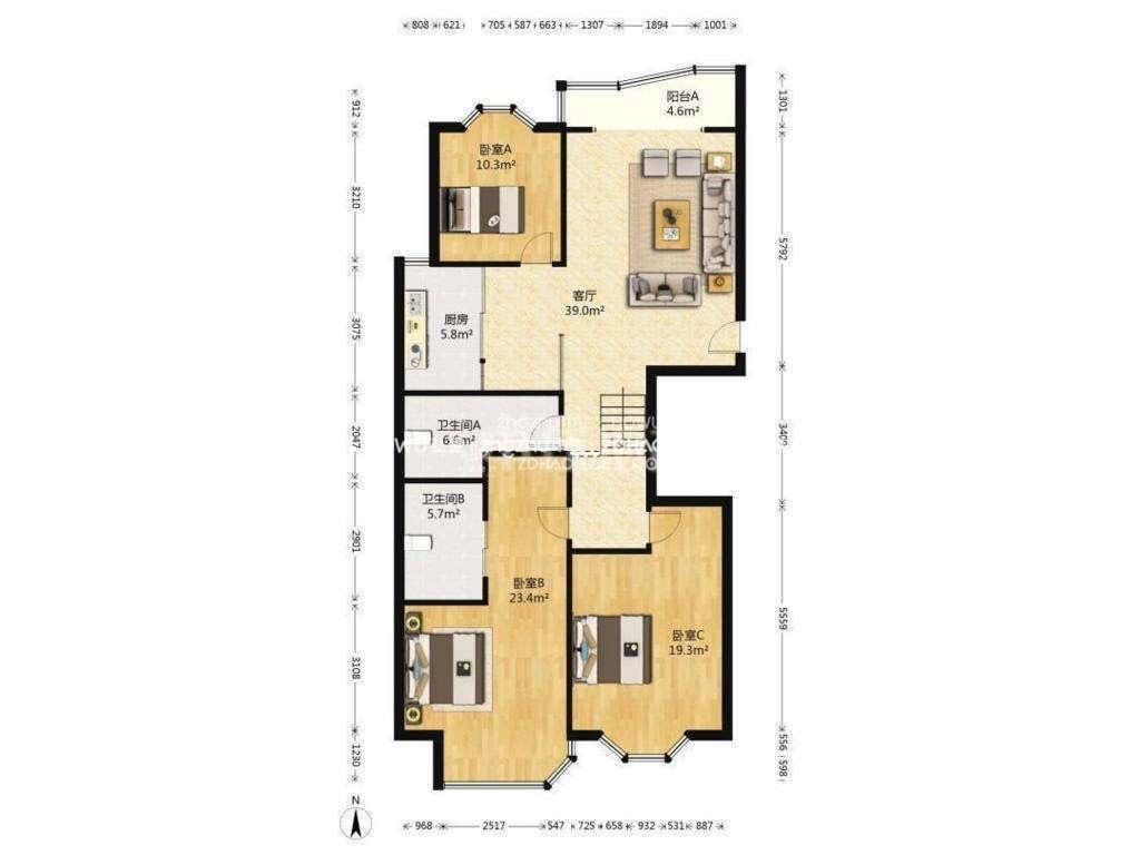 厅室3室2厅2卫1阳台