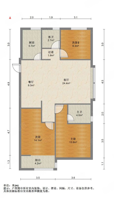 厅室3室2厅2卫2阳台
