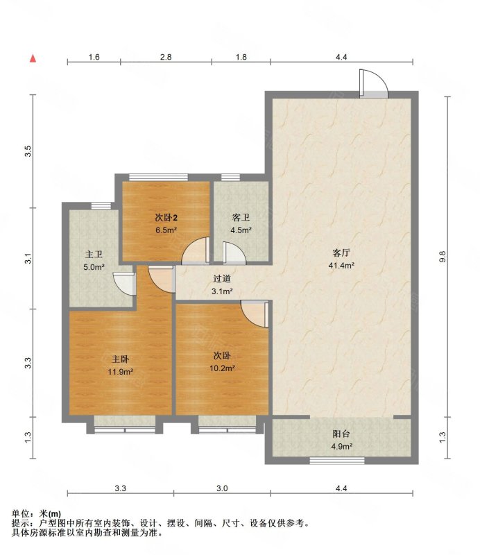 厅室3室2厅2卫2阳台