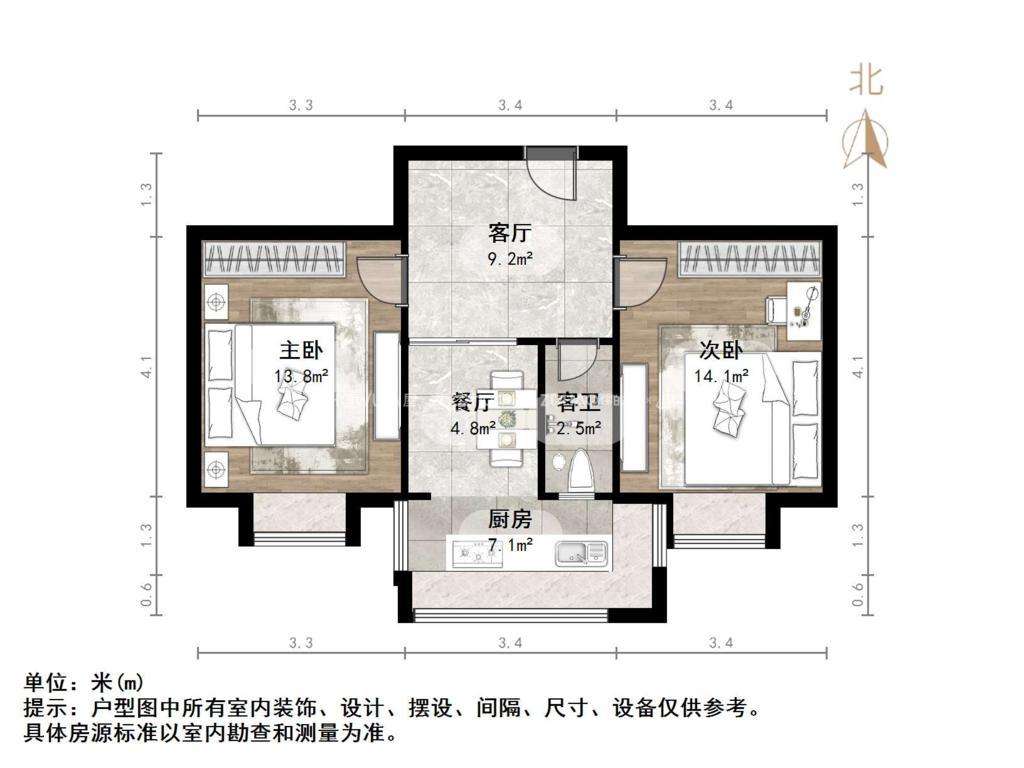 朝向南北 建筑面积55.1㎡