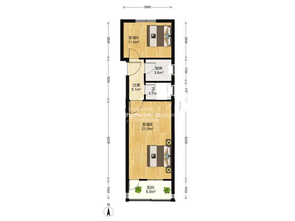 厅室2室0厅1卫1阳台