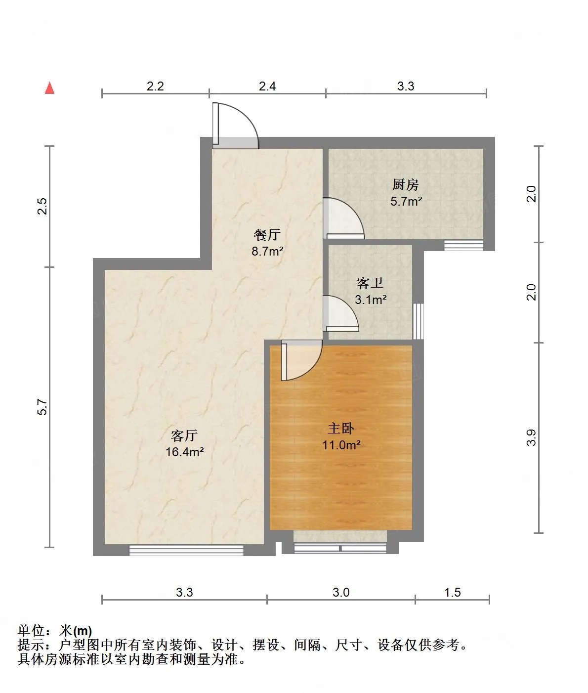 朝向南北 建筑面积61㎡