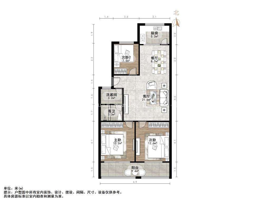 朝向南 建筑面积108㎡