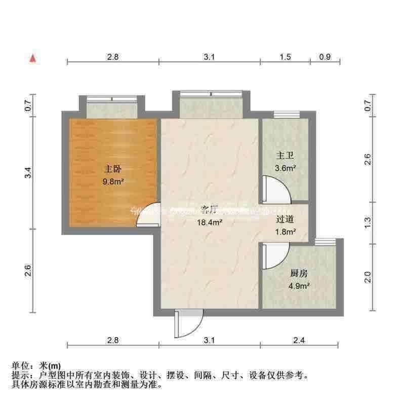 厅室1室1厅1卫1阳台