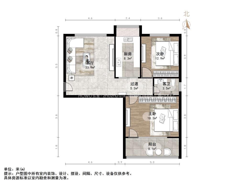 厅室2室1厅1卫1阳台