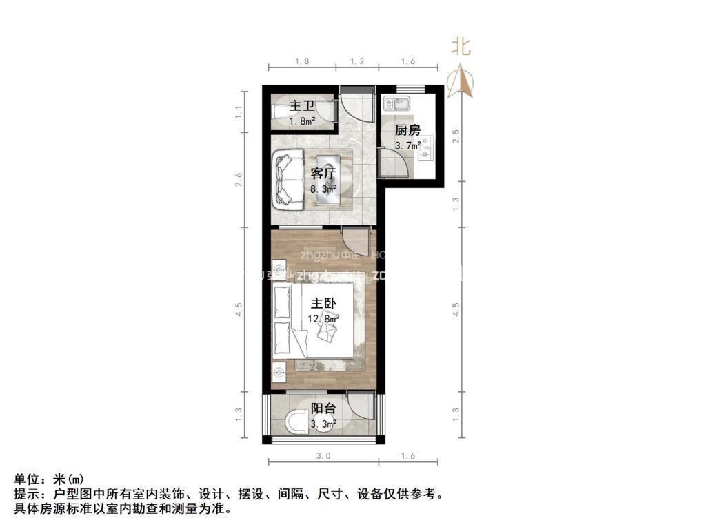 厅室1室1厅1卫1阳台