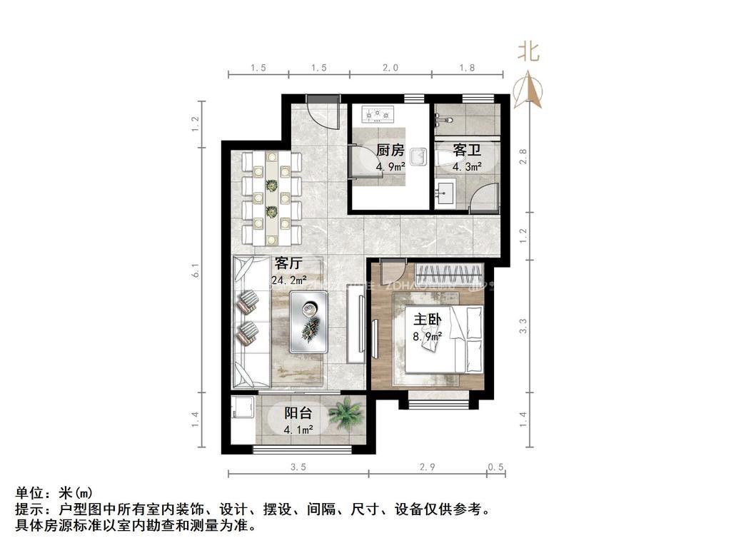 厅室1室2厅1卫1阳台