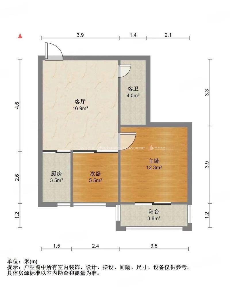 厅室2室1厅1卫1阳台