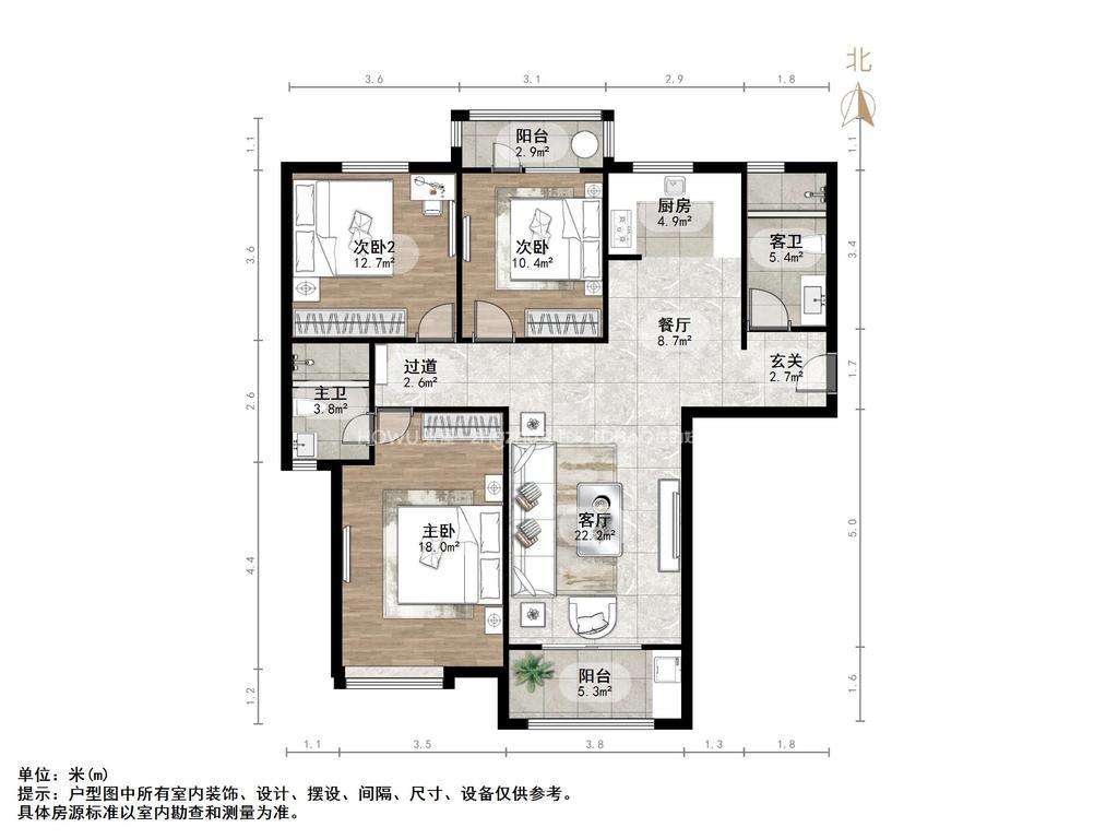 厅室3室2厅2卫1阳台