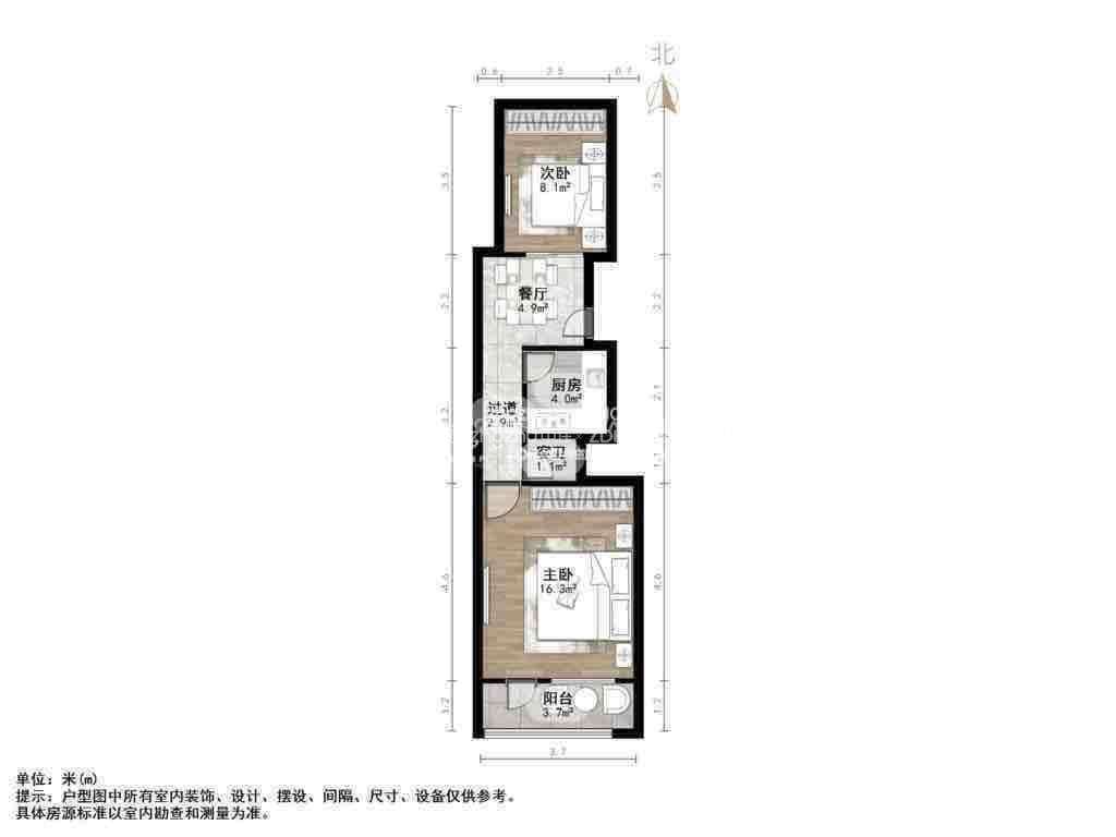 厅室2室1厅1卫1阳台