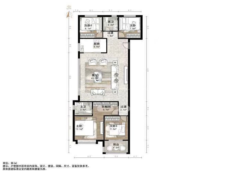 厅室4室2厅2卫1阳台