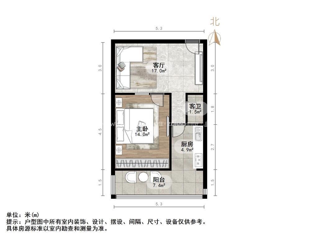 厅室1室2厅1卫1阳台