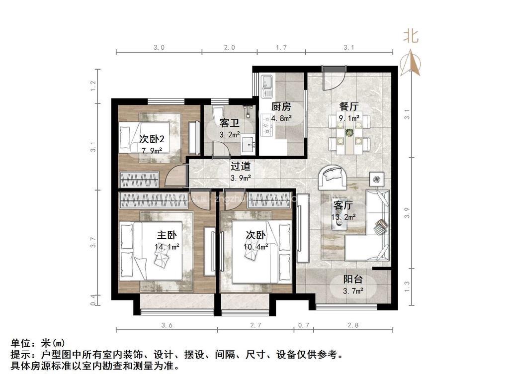 厅室3室2厅1卫0阳台