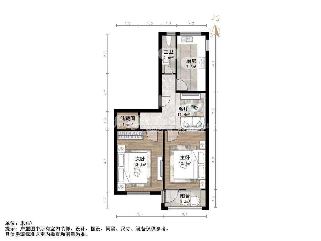 厅室2室1厅1卫1阳台
