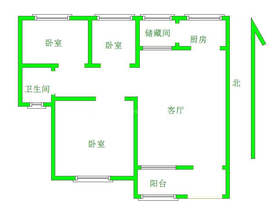 厅室3室2厅1卫1阳台