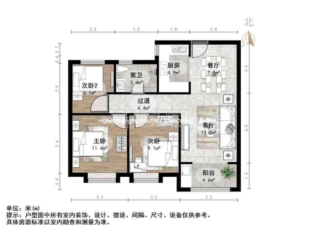 朝向南北 建筑面积108.71㎡