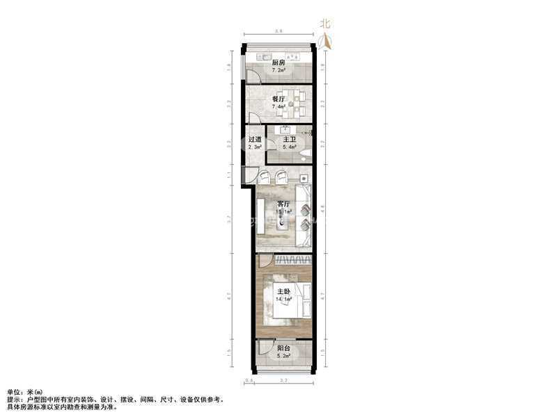 厅室2室1厅1卫1阳台