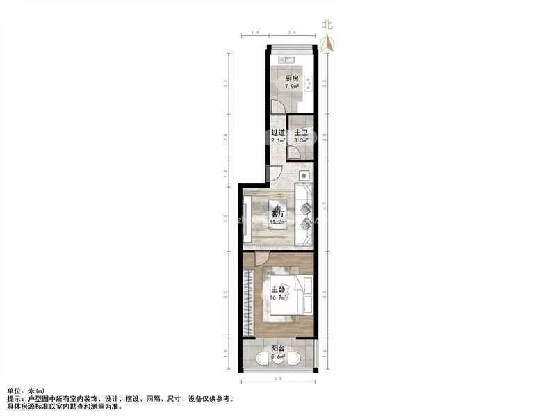 朝向南北 建筑面积61㎡