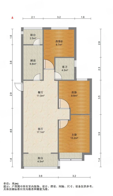 厅室3室2厅1卫1阳台