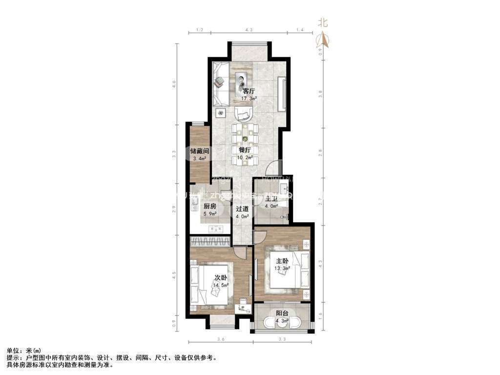 朝向南北 建筑面积99.5㎡