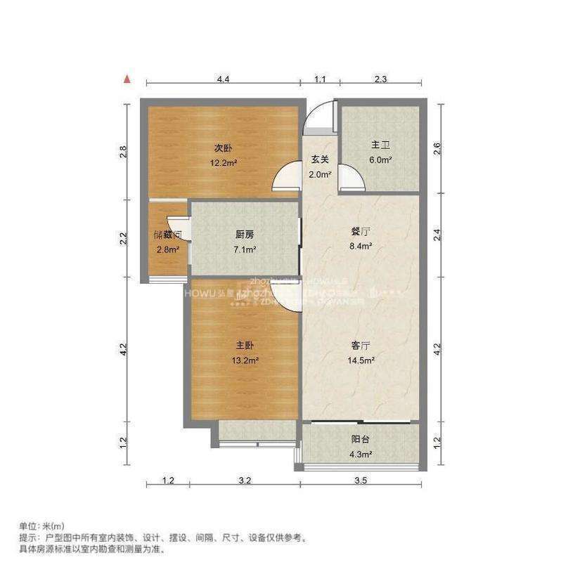 厅室2室2厅1卫1阳台