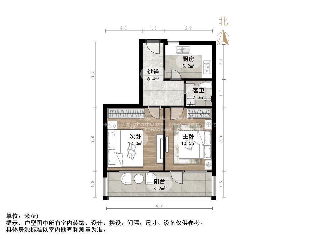 朝向南北 建筑面积58.8㎡