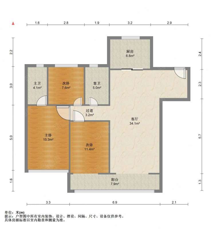厅室3室2厅2卫1阳台