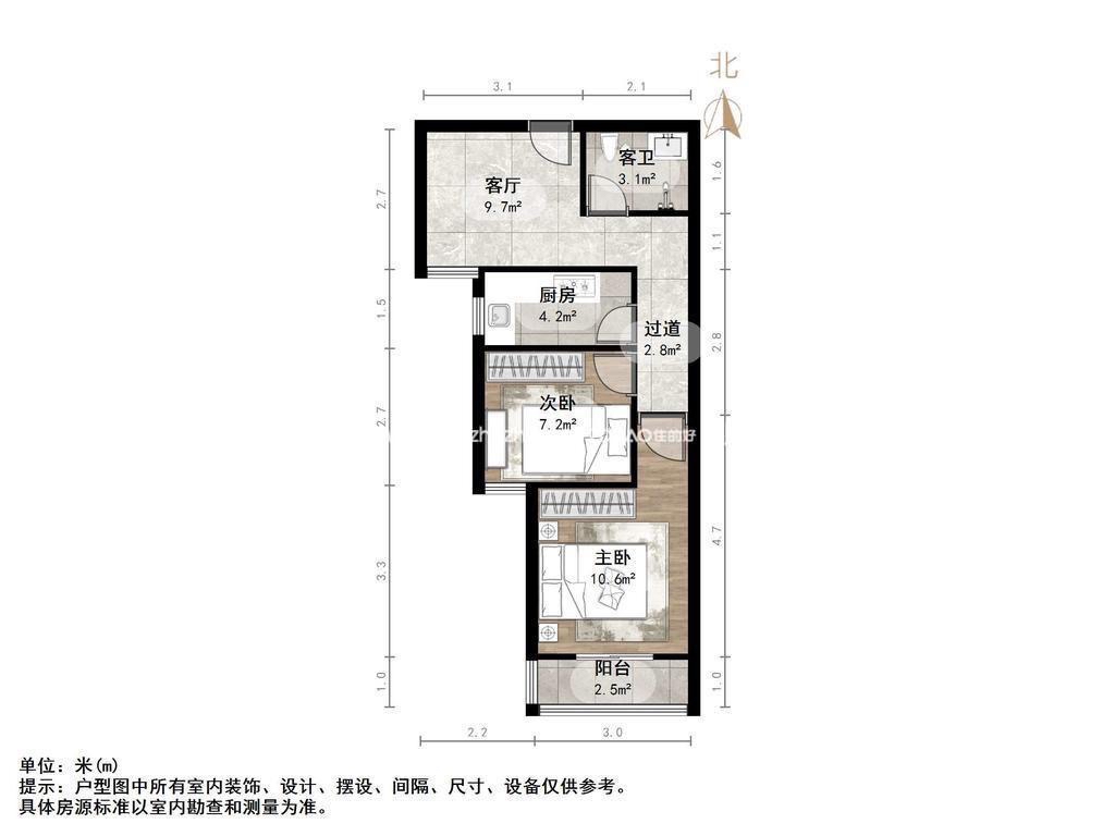 厅室2室1厅1卫1阳台
