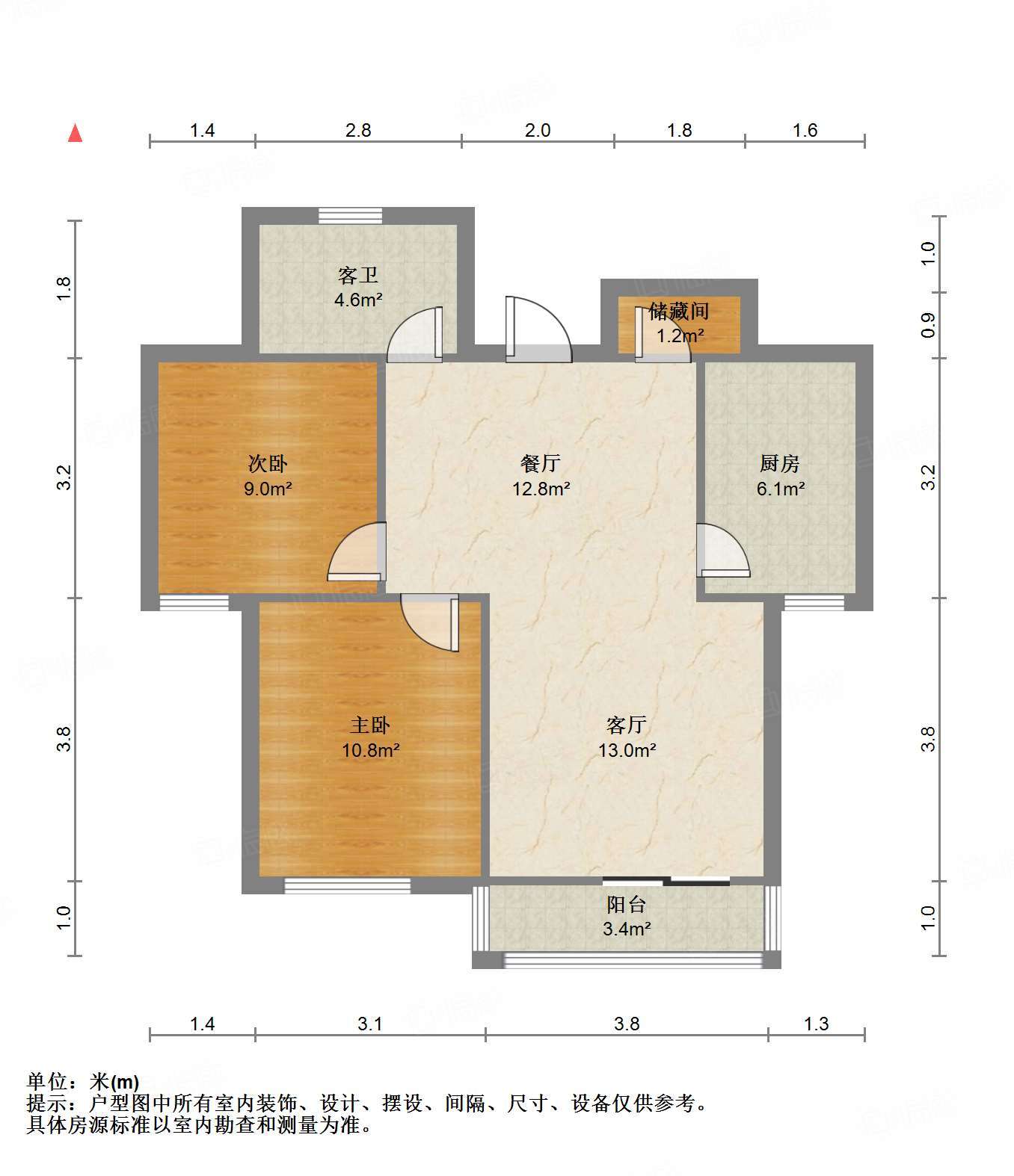 厅室2室1厅1卫1阳台