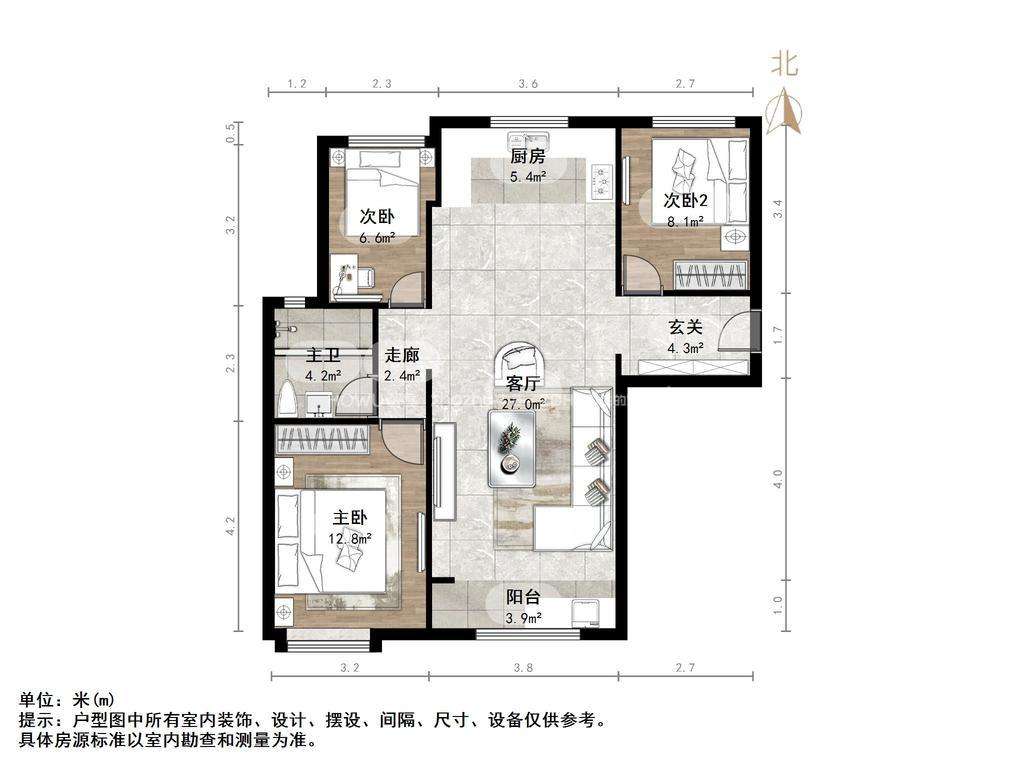 朝向南北 建筑面积106.68㎡