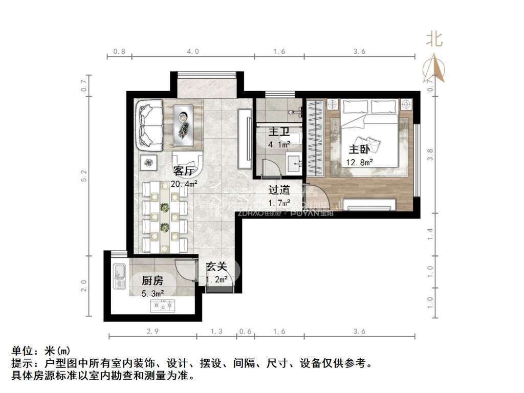 朝向北 建筑面积60.37㎡