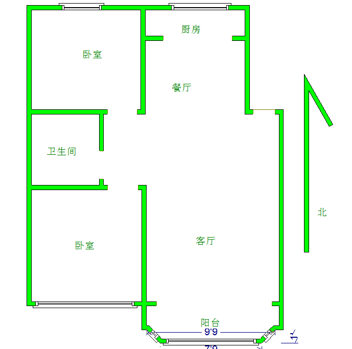 厅室2室2厅1卫1阳台