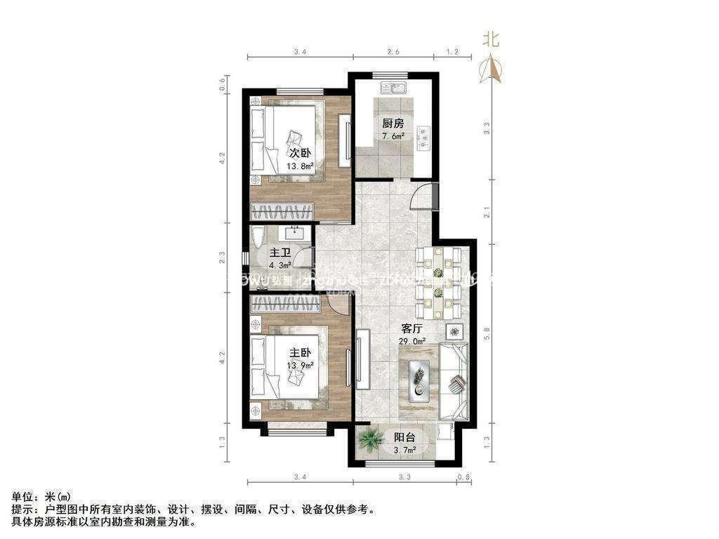 朝向南北 建筑面积95㎡