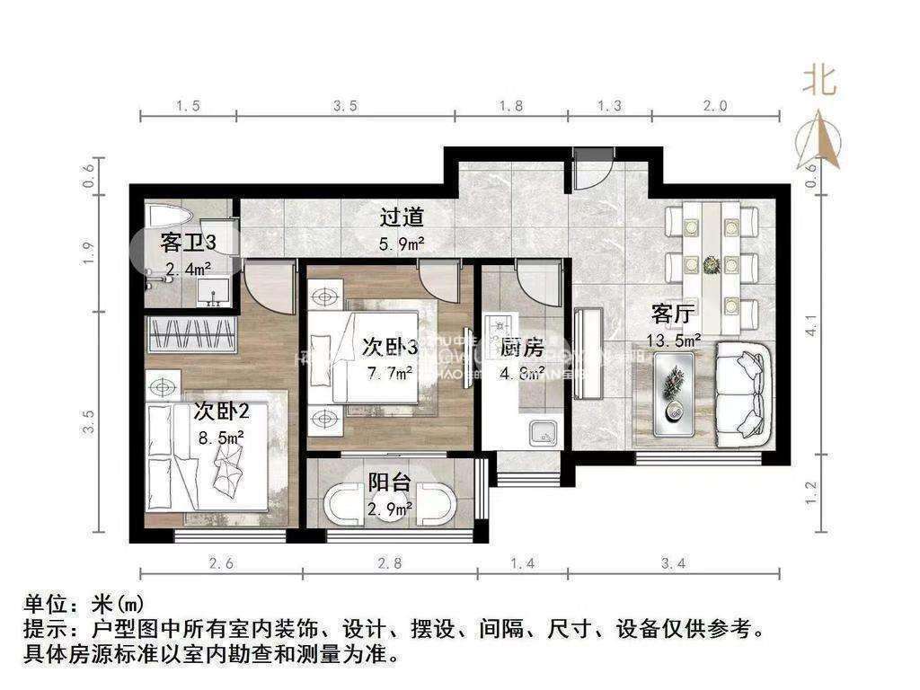 朝向南北 建筑面积79.68㎡