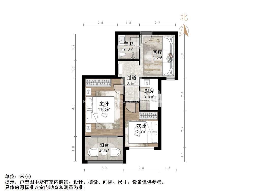 朝向南北 建筑面积62㎡