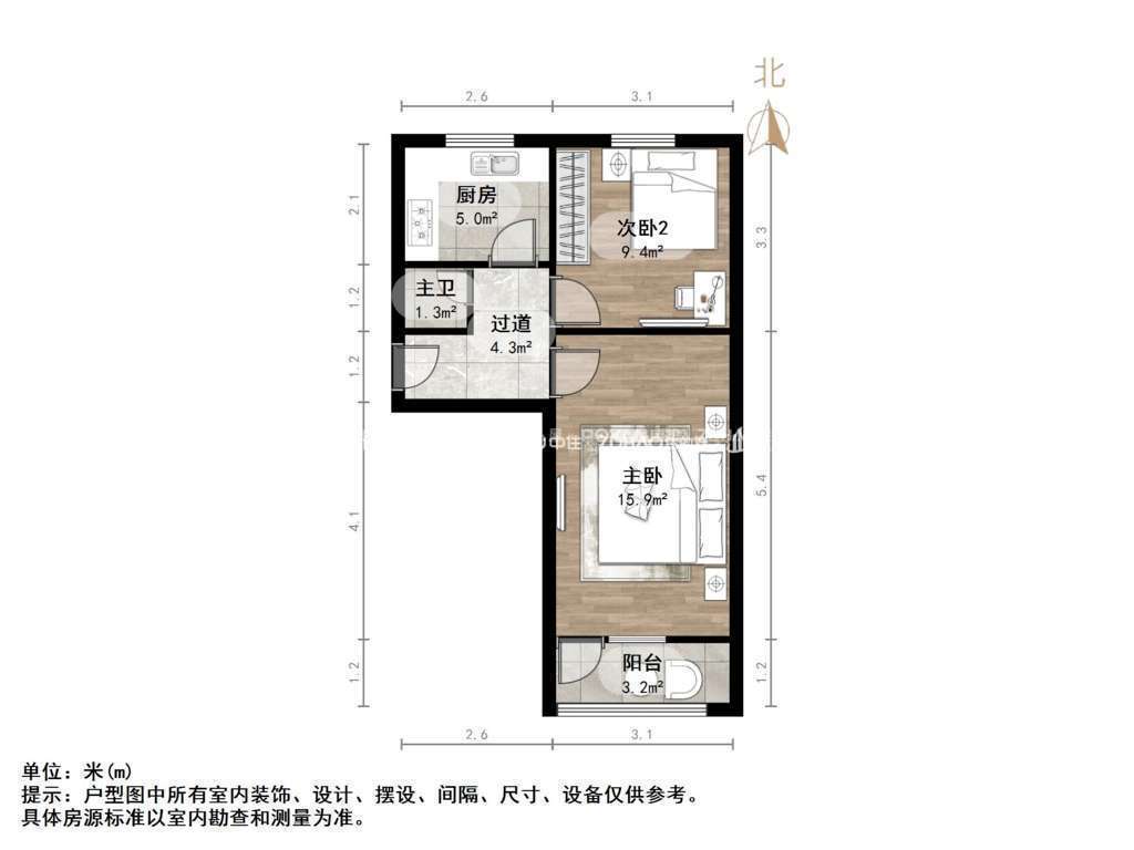 朝向南北 建筑面积53㎡