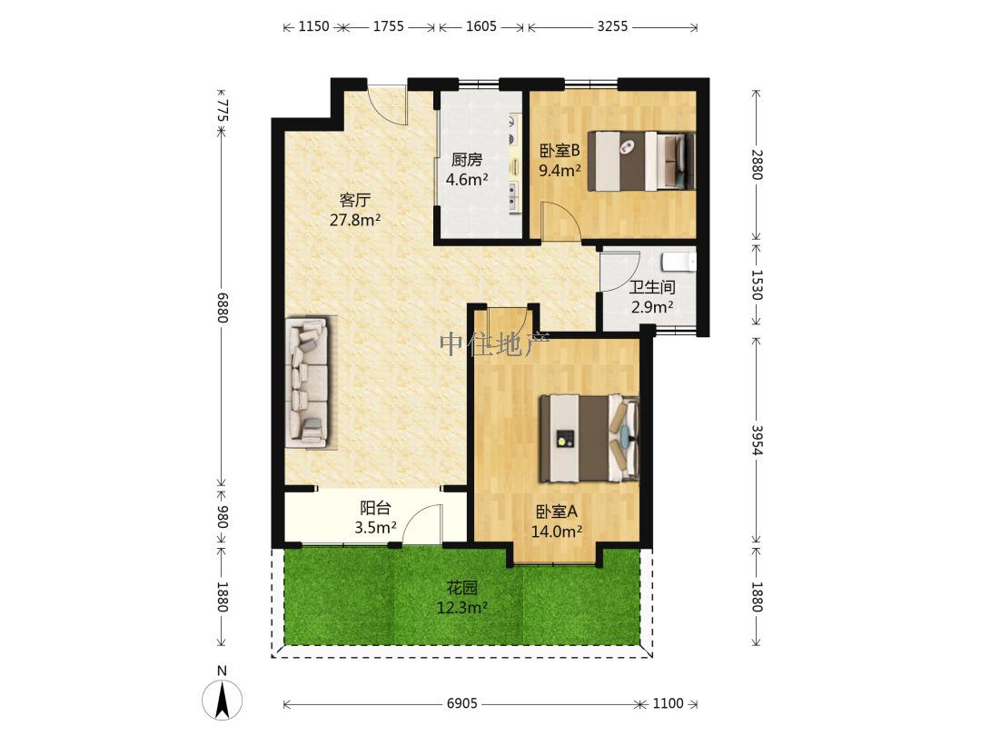 朝向南北 建筑面积94.56㎡