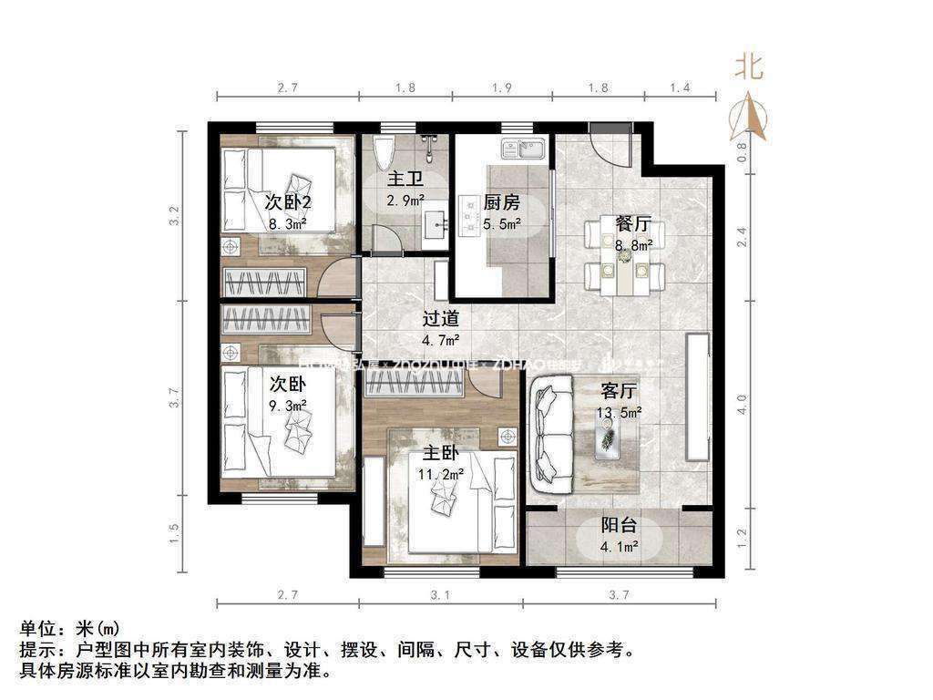 朝向南北 建筑面积95.92㎡