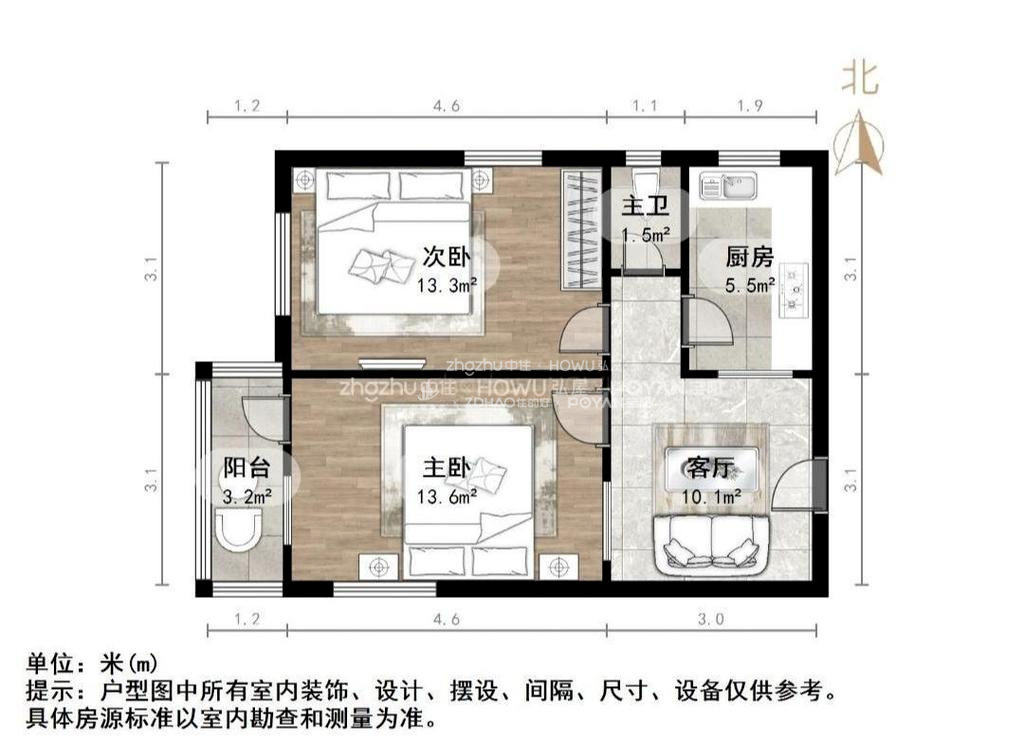朝向南北 建筑面积62.84㎡