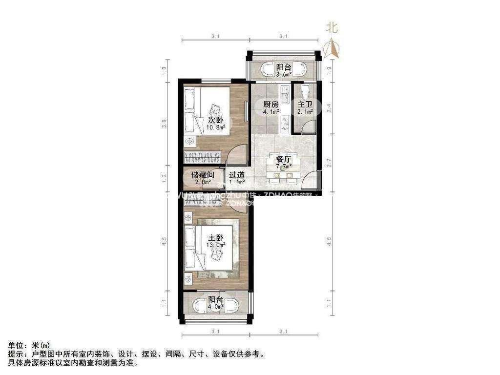 朝向南北 建筑面积61.28㎡