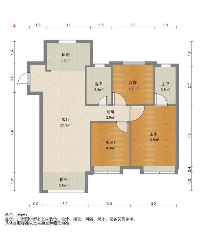 厅室3室2厅2卫1阳台