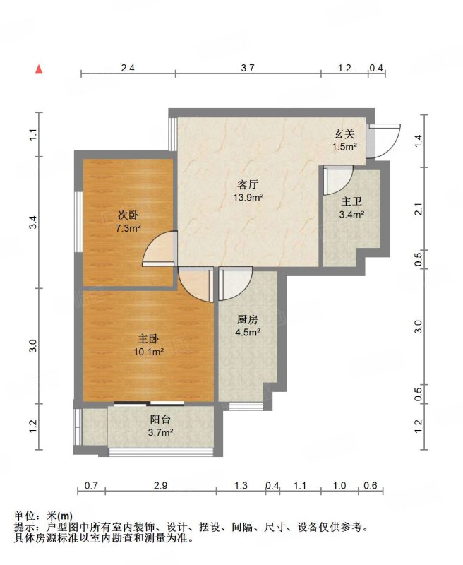 厅室2室1厅1卫1阳台
